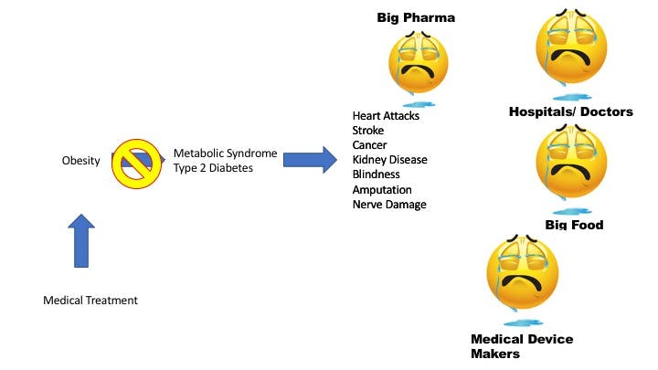 Here is how the modern medical system fares if people could use diet to control their own health and destiny. Reversing type 2 diabetes, as I explored in The Diabetes Code, is really very simple, and does not involve using expensive medicines or surgeries.