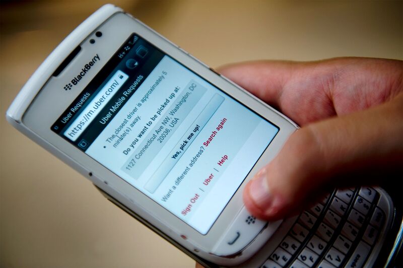 A man uses the Uber app on a Blackberry in 2012. Photographer: Linda Davidson/The Washington Post/Getty Images _______________