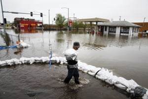FacebookTwitterPinterest James Fontenoy, of Davenport, helps sandbag a house after a flood wall on the Mississippi river broke. Photograph: Brian Powers/AP