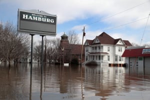 Pacific Junction’s 470 residents were forced to flee in mid-March after a surge of water hit the Missouri river and busted through levees the length of Iowa to create the region’s biggest floods in living memory. The breach that wrecked the town occurred a few miles to the north. Within hours, surrounding farmland disappeared under an inland sea and Pacific Junction was drowned by 15 feet of water.