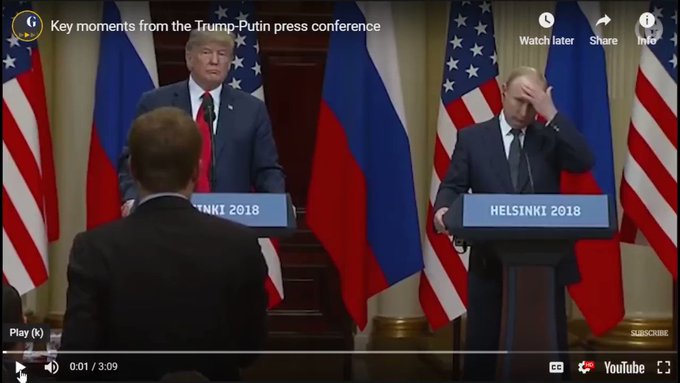 After another meeting with Putin in November 2017, Trump said, “Every time [Putin] sees me, he says, ‘I didn’t do that.’ And I believe—I really believe that when he tells me that, he means it. But he says, ‘I didn’t do that.’ I think he’s very insulted by it, if you want to know the truth. Don’t forget, all he said is he never did that, he didn’t do that. I think he’s very insulted by it, which is not a good thing for our country.”