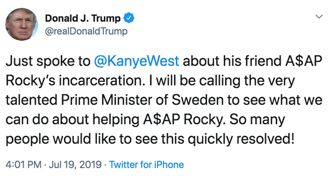 He was visited by personnel from the US embassy shortly after his arrest. [121] Some other artists have called for a boycott of Sweden due to the incident. [122] [123] A petition to release him has also been started. [124] He has denied rumours about "inhumane" conditions. [125] [126] The allegedly "inedible" food included turkey, veal, and rhubarb pie with custard. [127]Mayers' attorney Henrik Olsson Lilja has refuted the claims, stating that "he has been treated correctly." [128] [129] The family have asked Al Sharpton for help. [130]Former US ambassador to Sweden Mark Brzezinski suggested that the government should interfere and speculates that racism may have been the cause of the brawl. [131] Foreign minister Margot Wallström said the government will not interfere. Ove Bring, professor emeritus in international law and former international law adviser at the Ministry of Foreign Affairs, finds it strange that an ambassador doesn't understand the separation of powers. He would expect it from countries like China or Russia, but not from a democratic state. Fredrik Wersäll, former Prosecutor-General of Sweden, is also surprised. [132] According to Dennis Martinsson, a criminal law professor in Sweden, having the suspect in detention is normal in this type of case. He also said the case will likely end in prosecution. [133] The police conducted a search of the hotel room of ASAP Rocky's manager. [134] ASAP Rocky has hired a new defense lawyer. [134] In a move unknown in Swedish criminal history his US management hired a PR firm. [135] On the 19th of July the prosecutor asked for an extension until Thursday to finish the investigation. [136] [137] [138] First Lady Melania Trump asked President Donald Trump to get involved with Rocky's extradition, with assistance from the State Department. [139] |