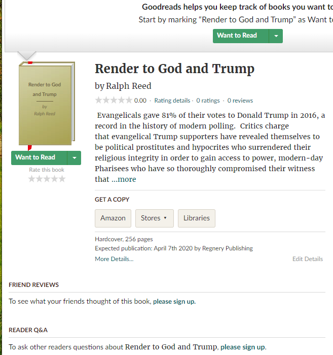 Update: The publisher appears to have updated the title overnight so that "Render to God and Trump" no longer shows up when you search the ISBN number.