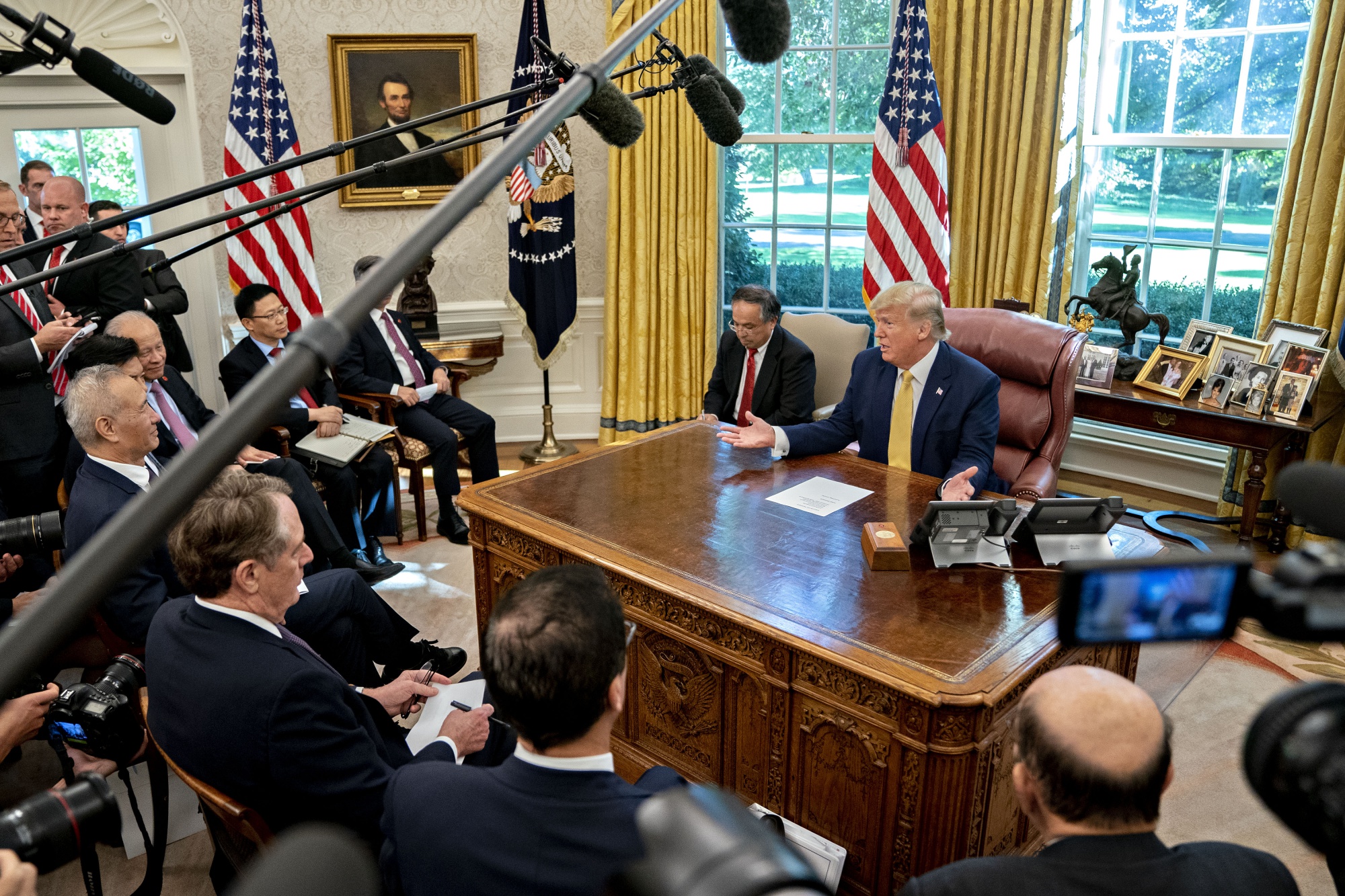 Donald Trump meets with Liu He in the Oval Office on Oct. 11.
