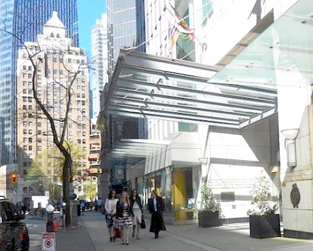 The Terminal City Club is shown at right with the Vancouver’s heritage-listed Marine building of 1930 in the background.
