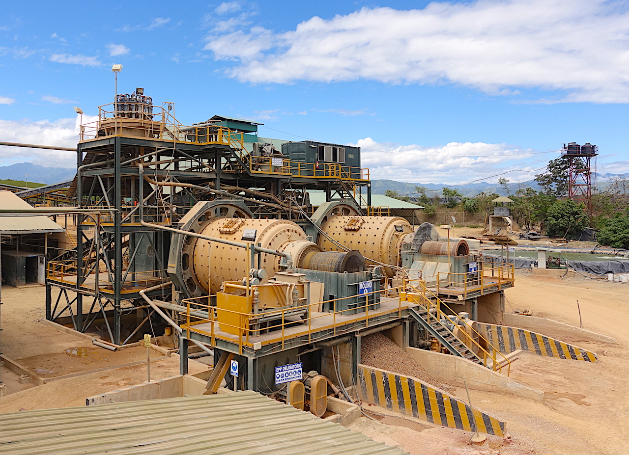Photo - Core Gold's ball mills are the most iconic feature of its Portovelo plant. Nameplate capacity is 2,000 tons/day.