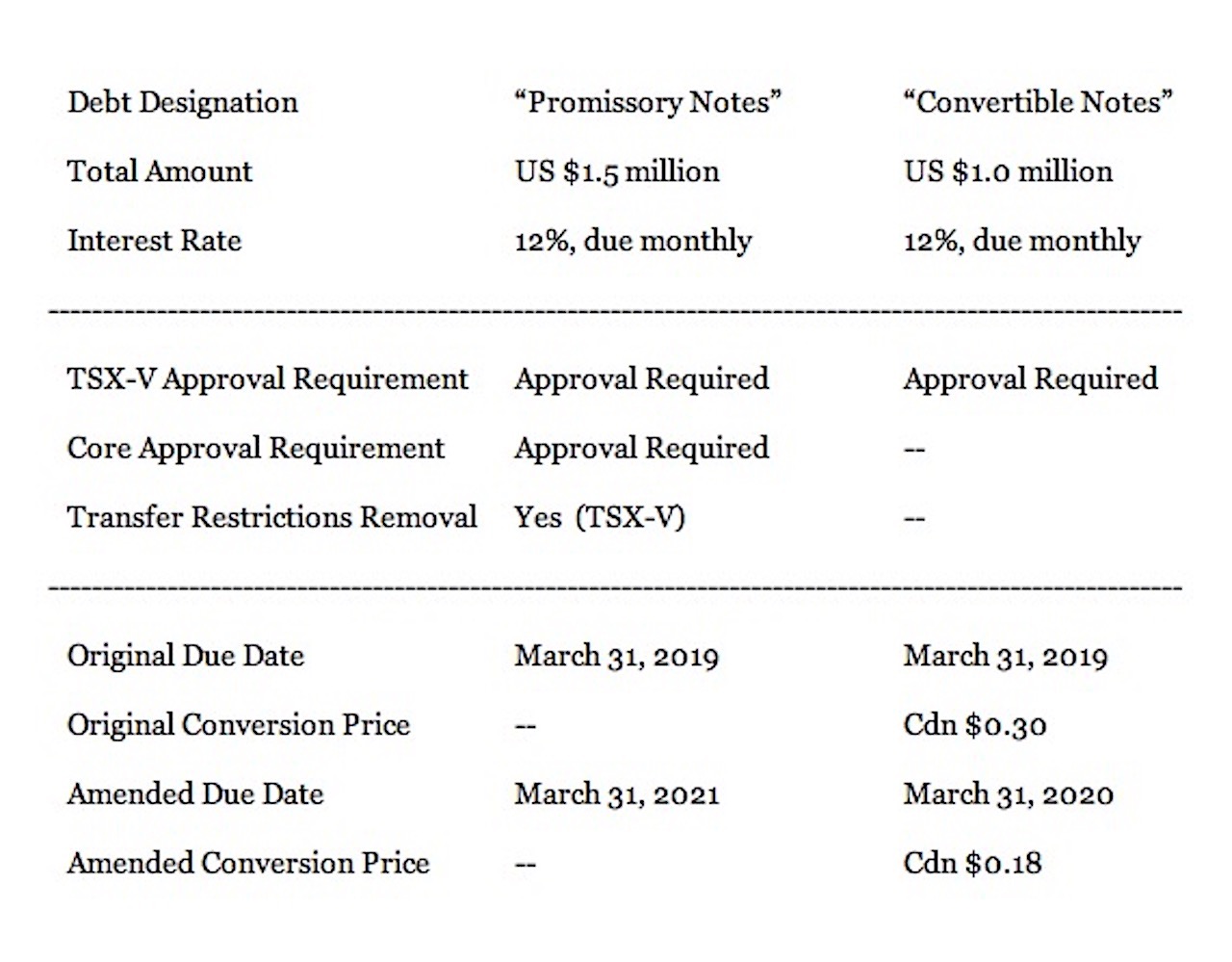 • 7) September 11 - The TSX-V acknowledges Core Gold’s requests to reschedule and change the terms of the debts: