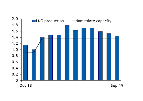 If production at this level holds through winter, loaded volumes would rise by an average of 215,000 t/month from a year earlier. This would equate to an additional 2.7 cargoes each month, judging by an Arc7's 172,600m³ capacity and accounting for heel gas.