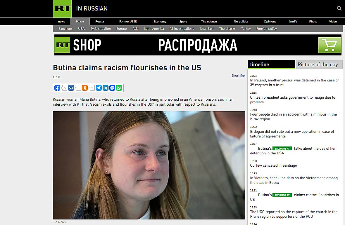 The Red Sparrow starts chirping: Freshly deported Maria Butina complains of rampant racism in the United States - against the Russians.