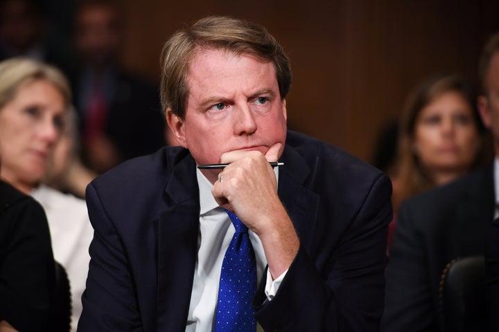 POOL NEW / REUTERSWhite House counsel and assistant to the President for U.S. President Donald Trump, Donald McGahn, as Supreme Court nominee Brett Kavanaugh testifies before the Senate Judiciary Committee on September 27, 2018.