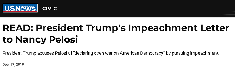 December 17 Impeachment Eve: Donald Trump's scathing 6 page letter to Nancy Pelosi ...
