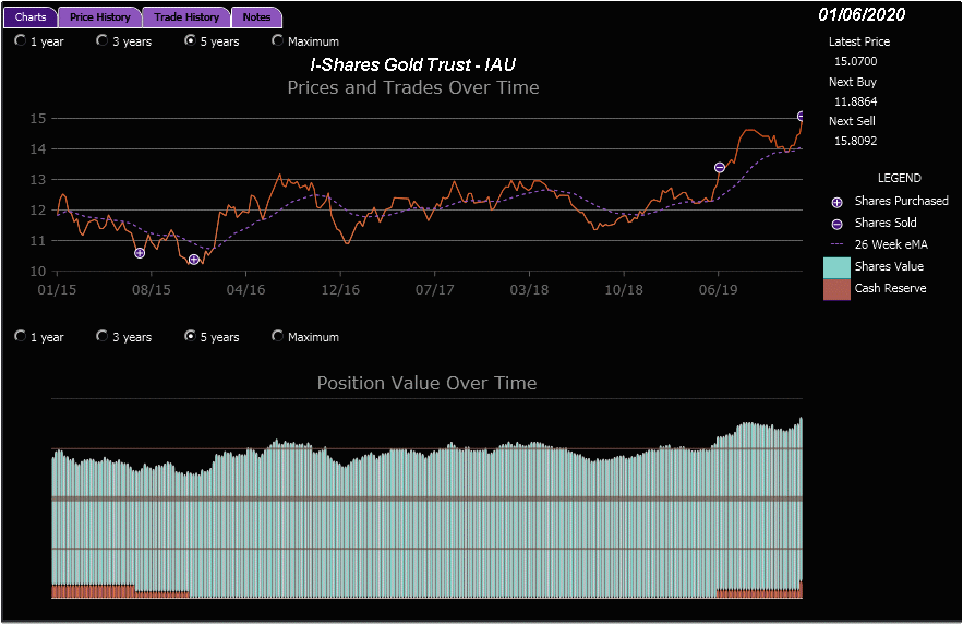 This AM a GTC Sell limit order filled on my IAU position at $15.07. That was a few pennies higher than my