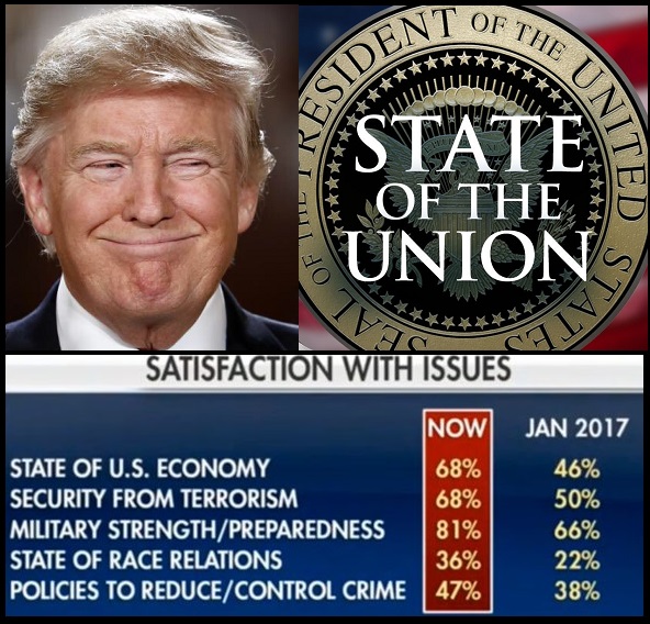 As President Trump prepares to deliver his State of the Union speech to congress, these results will likely provide some measurable data for him to highlight. Satisfaction with the U.S. economy has jumped a whopping 22 percent since President Trump took office.