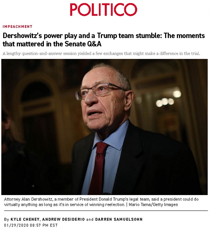 January 29, 2020 | The Senate Q&A in Trump;s Impeachment Trial (A Politico view) ...