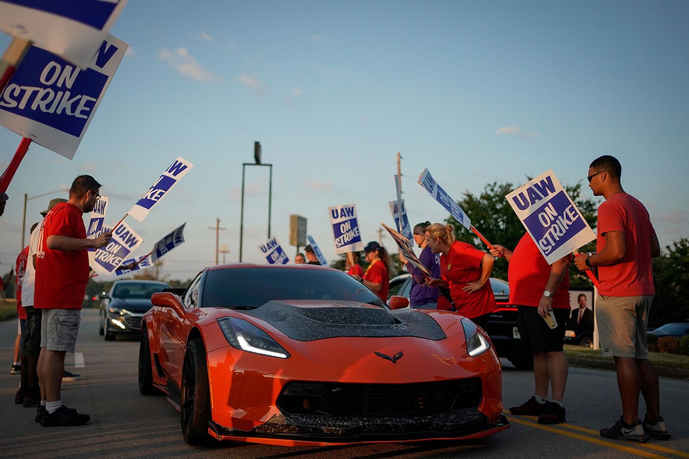 Strikers in Bowling Green, Ky. PHOTOGRAPHER: BRYAN WOOLSTON/REUTERS The 46,000 autoworkers who went out on strike on Sept. 15 are here to win, too. They made concessions in jobs, wages, and benefits to get GM through bankruptcy, and now they want their quid pro quo. How the walkout is settled will have much to do with how Barra arrived at this moment in GM’s history. The world’s fourth-largest carmaker isn’t slashing payrolls, shutting facilities, and going to the brink with the United Auto Workers because cash is running low or sales and profits are falling. On the contrary, GM has posted near-record adjusted profits of about $12 billion for three straight years. It has ample cash reserves. What it lacks—or at least, what Barra lacks—is faith that the internal combustion engine and human-driven cars will sustain it as a global power for decades to come.