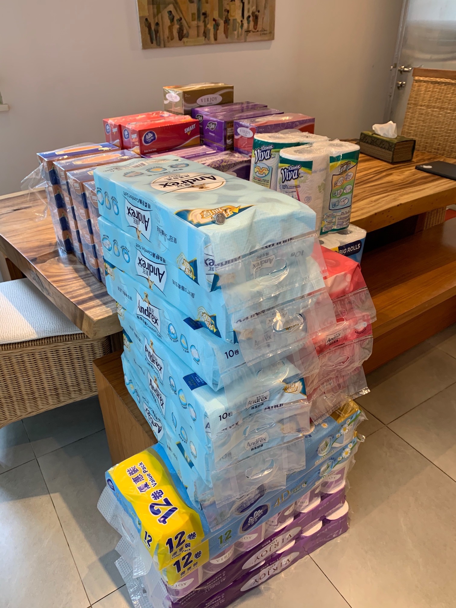 (3) The household is on autopilot. We are supplied well with plenty of toilet paper rolls, tissues, and masks etc etc, along w/ the food and such. My mom is staying at my place, to tutor the Jack in Chinese language.