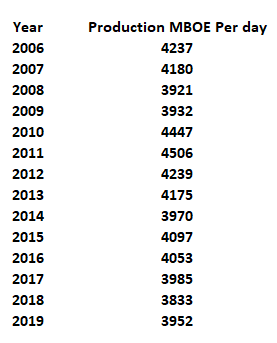 That's an incredibly long time frame and puts to ease any doubts about any temporary issues. World production of course has grown in that time frame, both for oil and natural gas. XOM has of course sold and bought assets during that time frame, but it also has invested very huge amounts of capex in its projects.