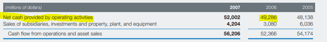 How Bad You Ask?While investors may think we are making mountains out of molehills here for a small decline, we think they should hear us out. The margin shift along with production declines has been beyond terrible for the company. In 2006, XOM produced close to $50 billion of operating cash flow.