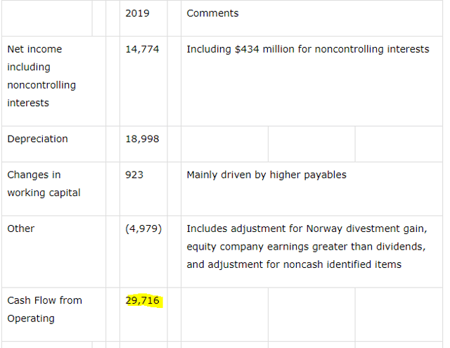 Abandon the dividend?Based on XOM's capital expenditure plans of $30 billion, operating cash flow will be dwarfed by just the capex in 2020. There should be zero left for the dividends.