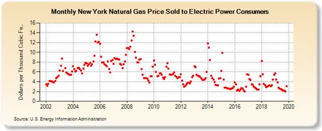 There are two main reasons for this. The first is cost inflation as everything today is more expensive than it was 14 years ago. XOM hence makes less operating cash flow per barrel. The second is the big collapse in natural gas prices which have moved down by 75% in North America.