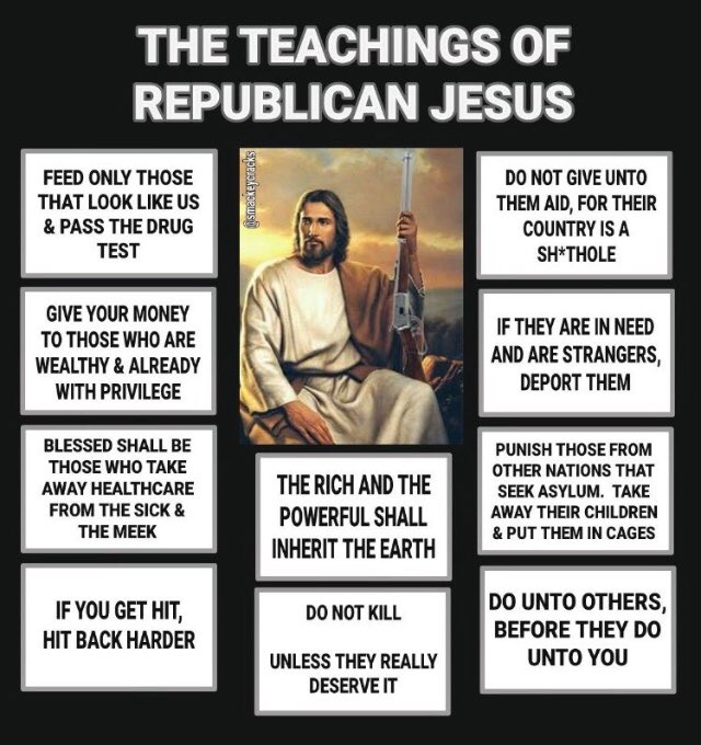 [ Quoting a famous admonition of Jesus, The Vile One says the opposite and his audience applauds. ]