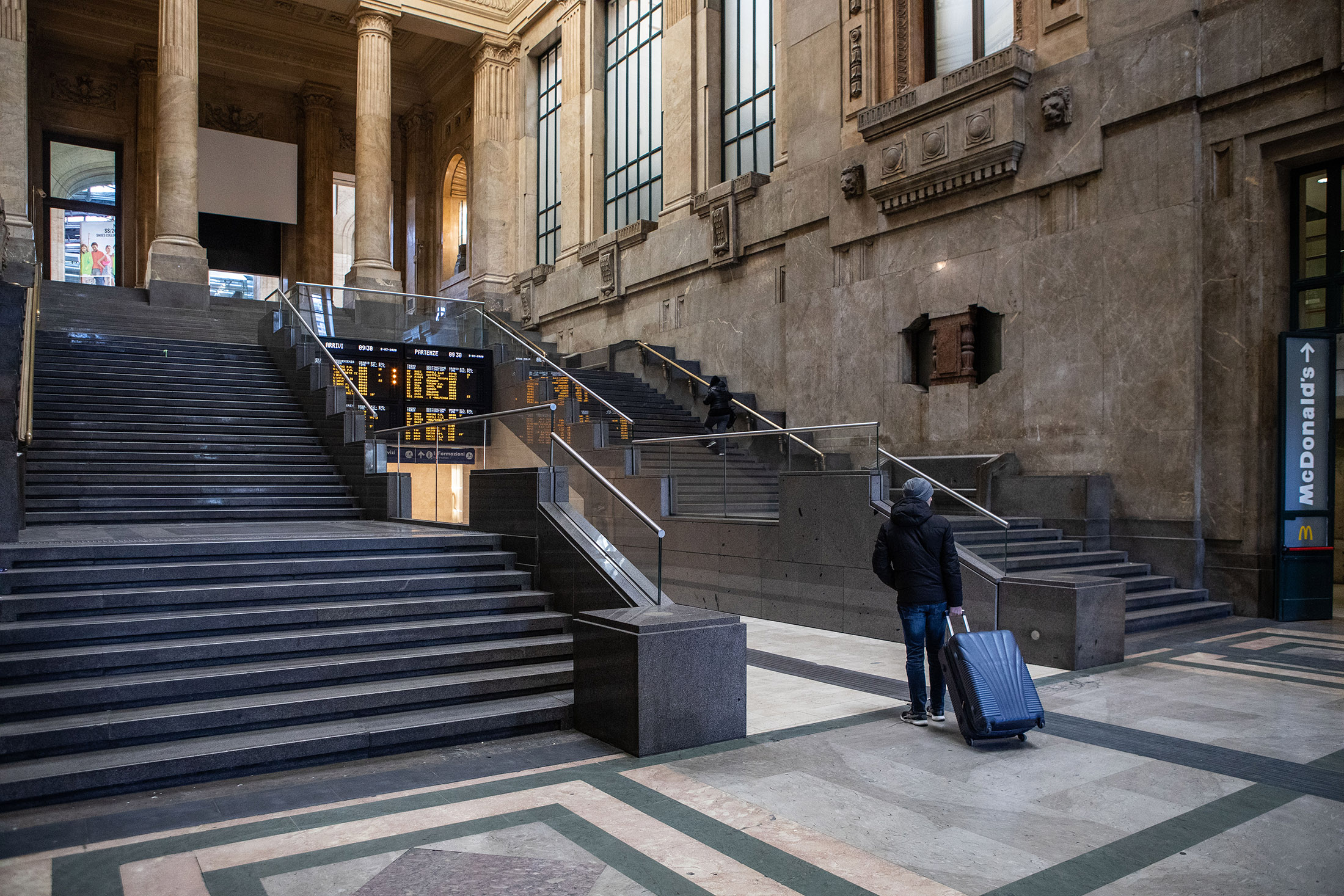 A traveler pulls luggage through Milan’s Central Station on March 8.