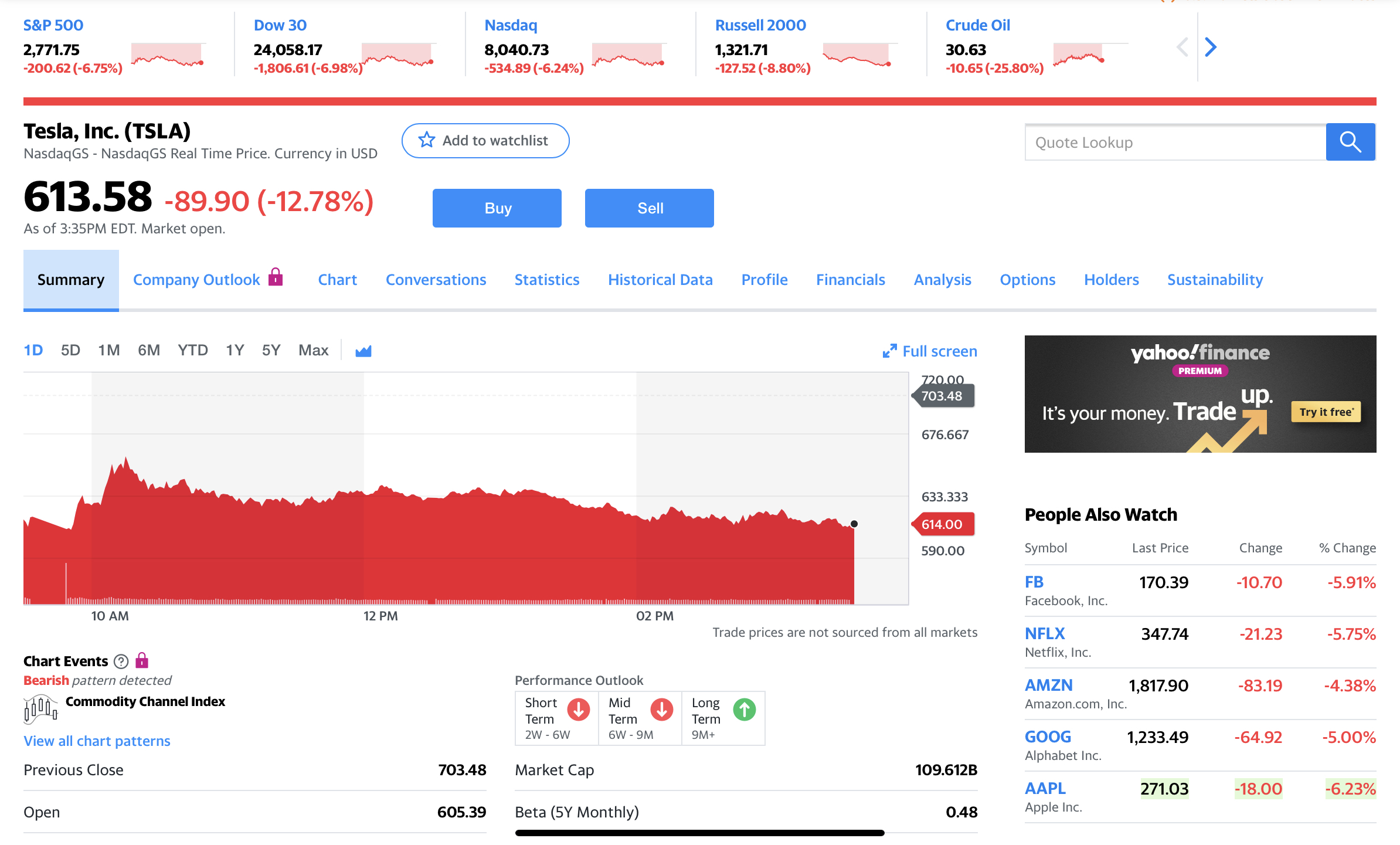 TSLA, FB, NFLX, AMZN, GOOG, AAPL, and the indices
