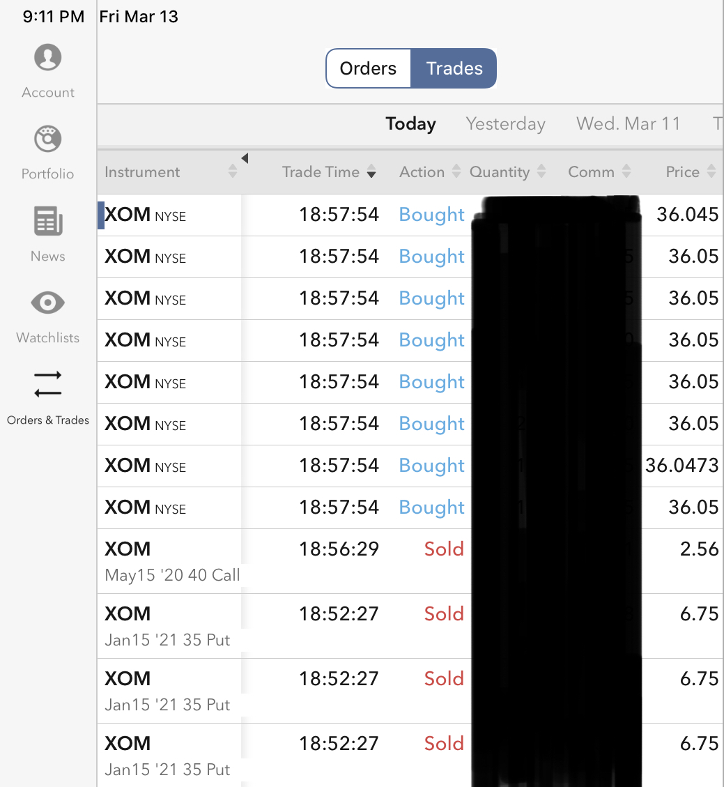 Bought shares at 36.05 Made promise to sell at 40 on or before May 15 2020, got paid 2.56 Under obligation to buy more at 35 between now and Jan 15 2021, got paid 6.75