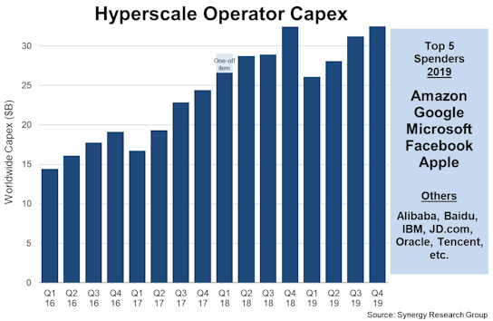 2019 hyperscale data center spending growth exceeds capex growth: Synergy Research