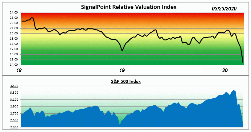 The Relative Valuation Index hasn't been this low since March of 2009 as the markets bottomed from the Financial Crisis.