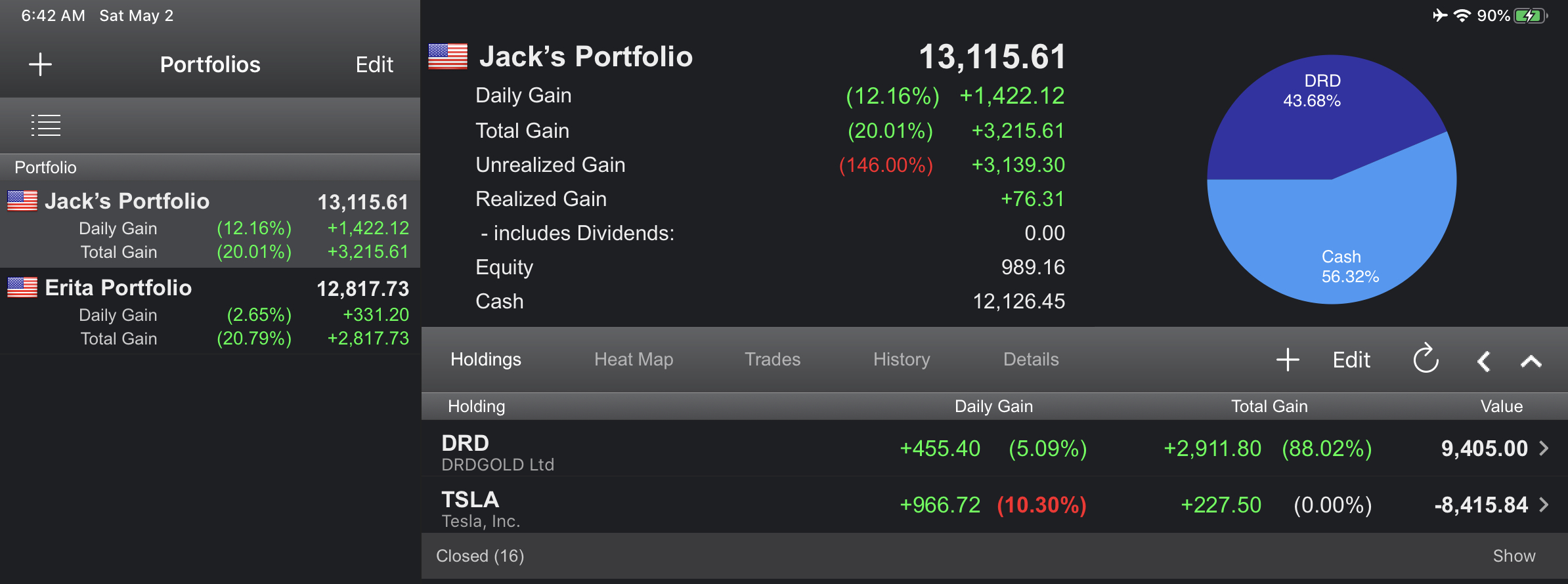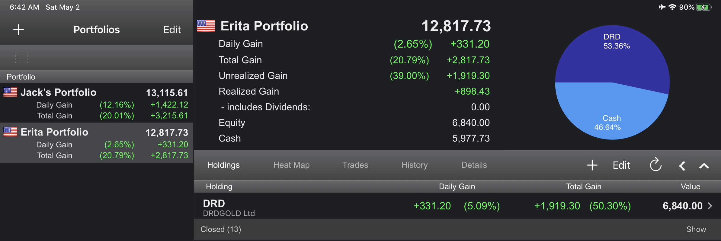 The Coconut & Jack’s portfolios were at +25% and 17% YTD respectively as at yesterday (May 1st pre-open) Message 32710243 , and