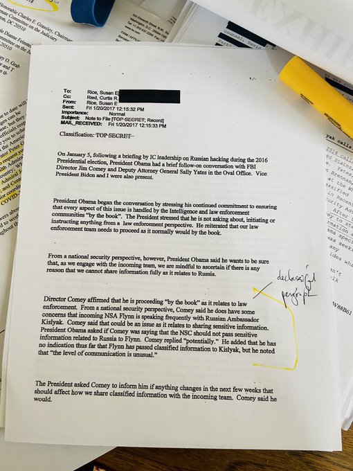 What this email reads like is a CYA attempt by Rice. It’s likely that the meeting isn’t even being fully described here, but rather that this is a sanitized version meant to protect her if things ever fell apart. This way she can see “see, I thought at the time everything was by the book.” Even still, there’s enough revealed here to show that the Obama administration was out of line in their pursuit of Flynn, and when you couple this with how they eventually bent the rules to get him fired (and later charged by Mueller), things look even worse. |