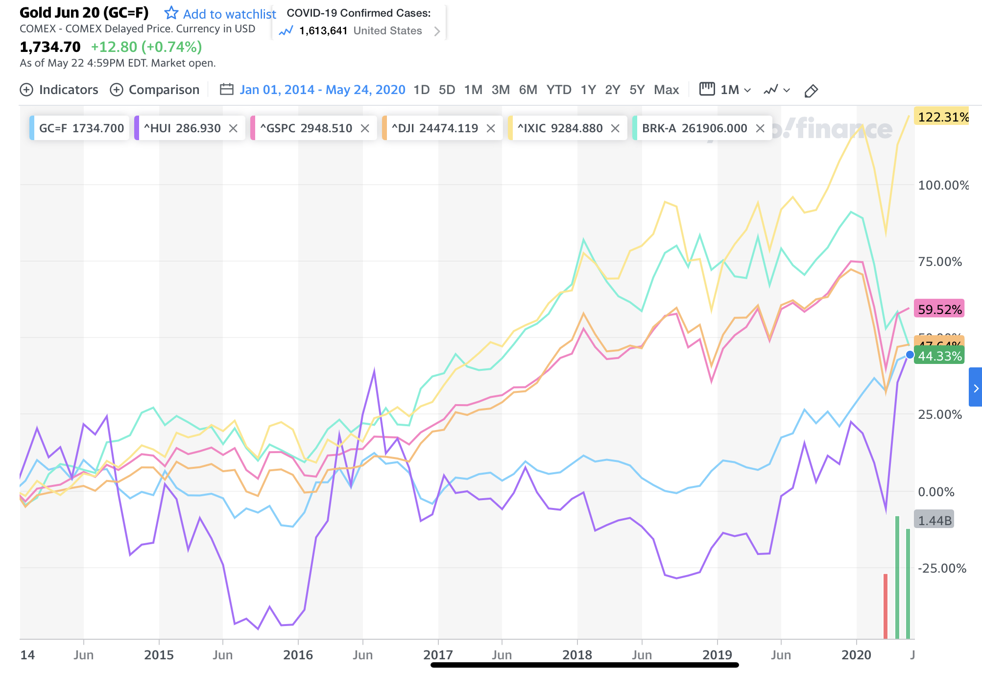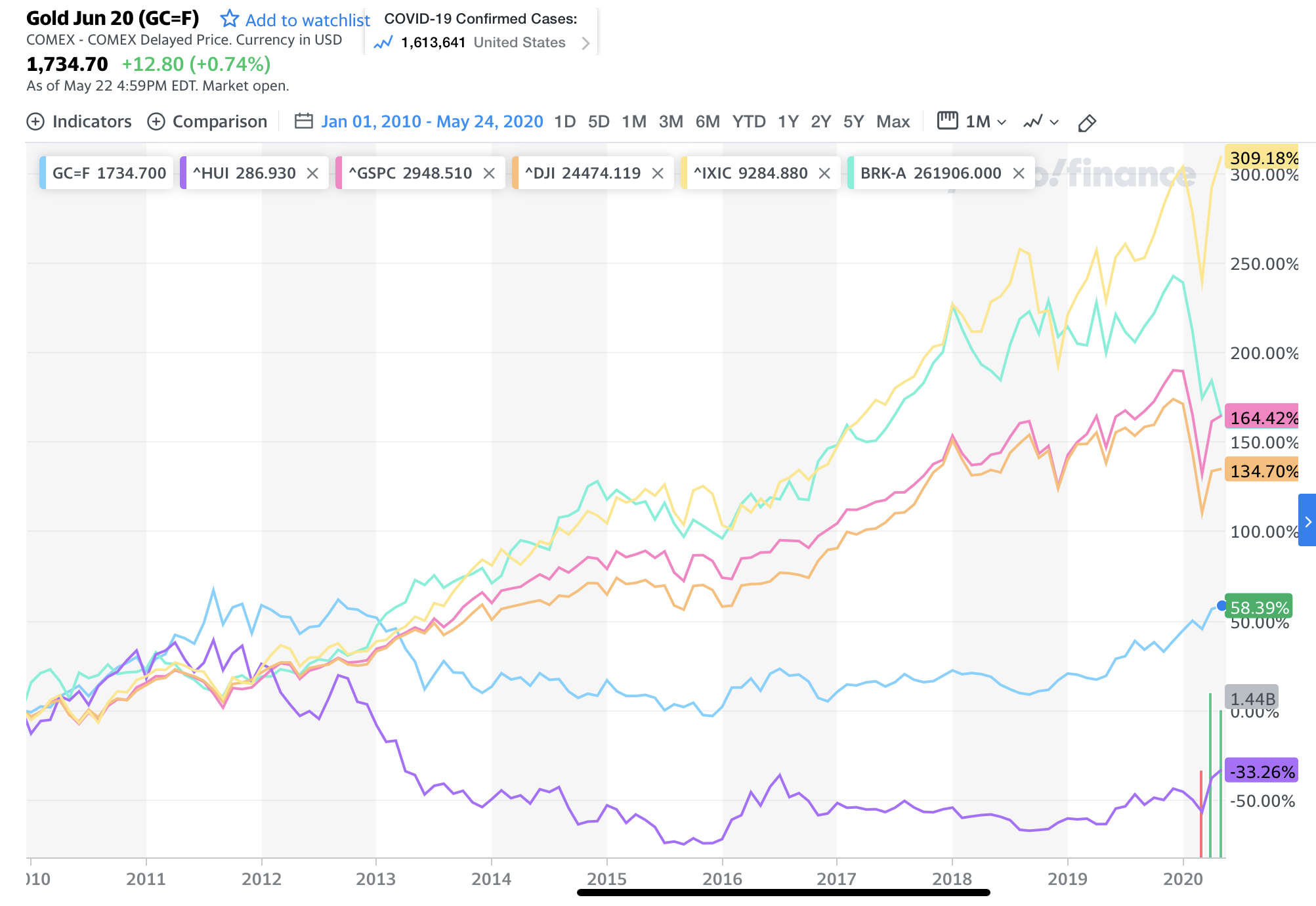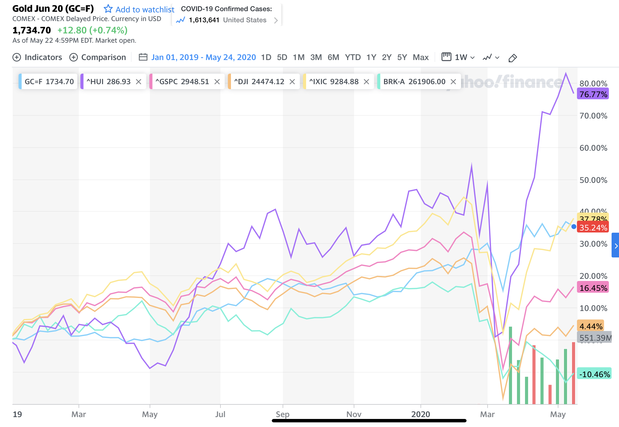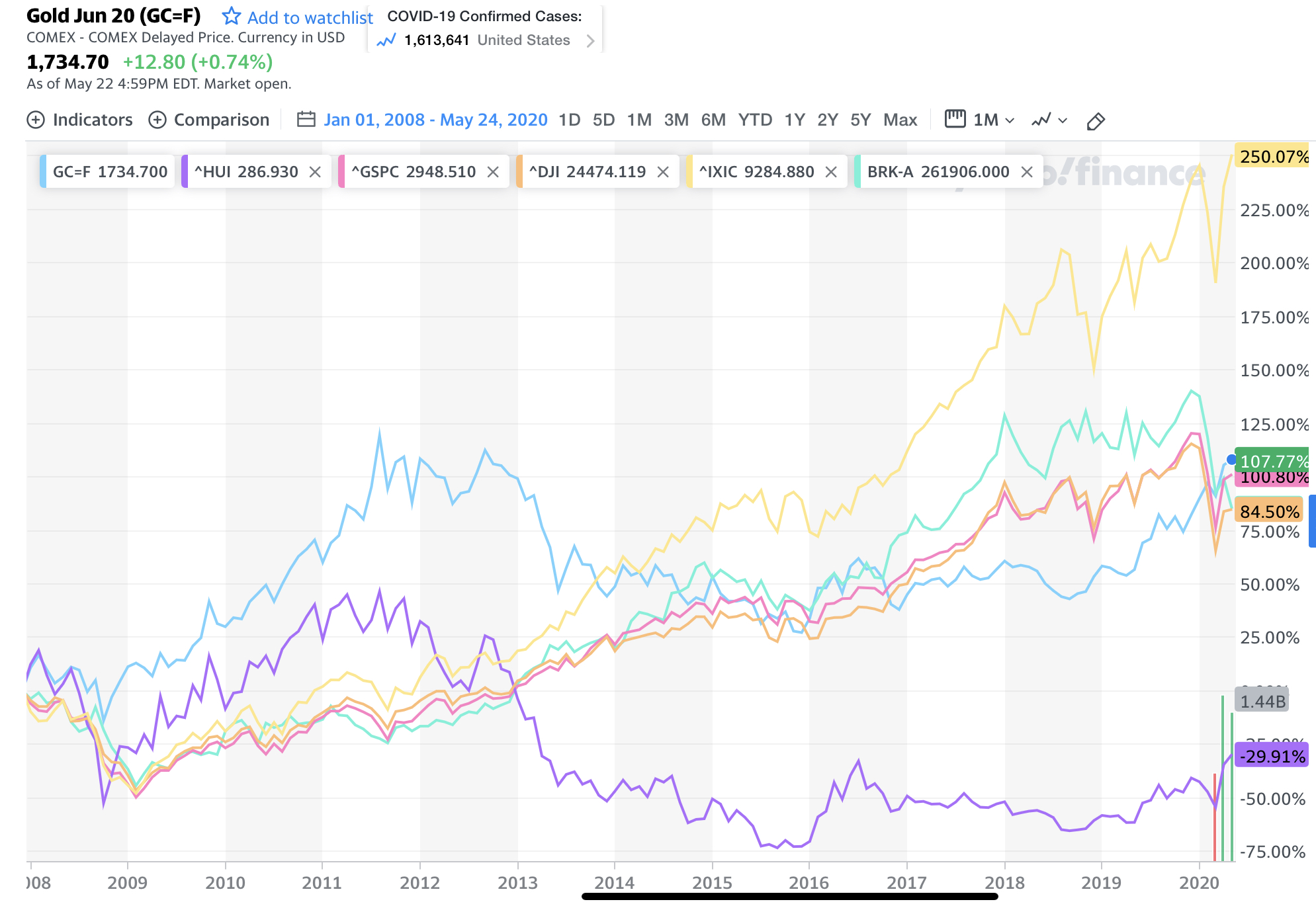 HUI is ahead of itself and gold is behind non-gold shares, gold shall rise more, and non-gold shares are about to crater, or