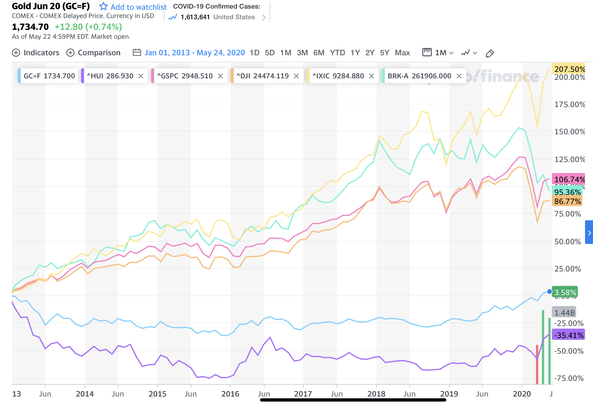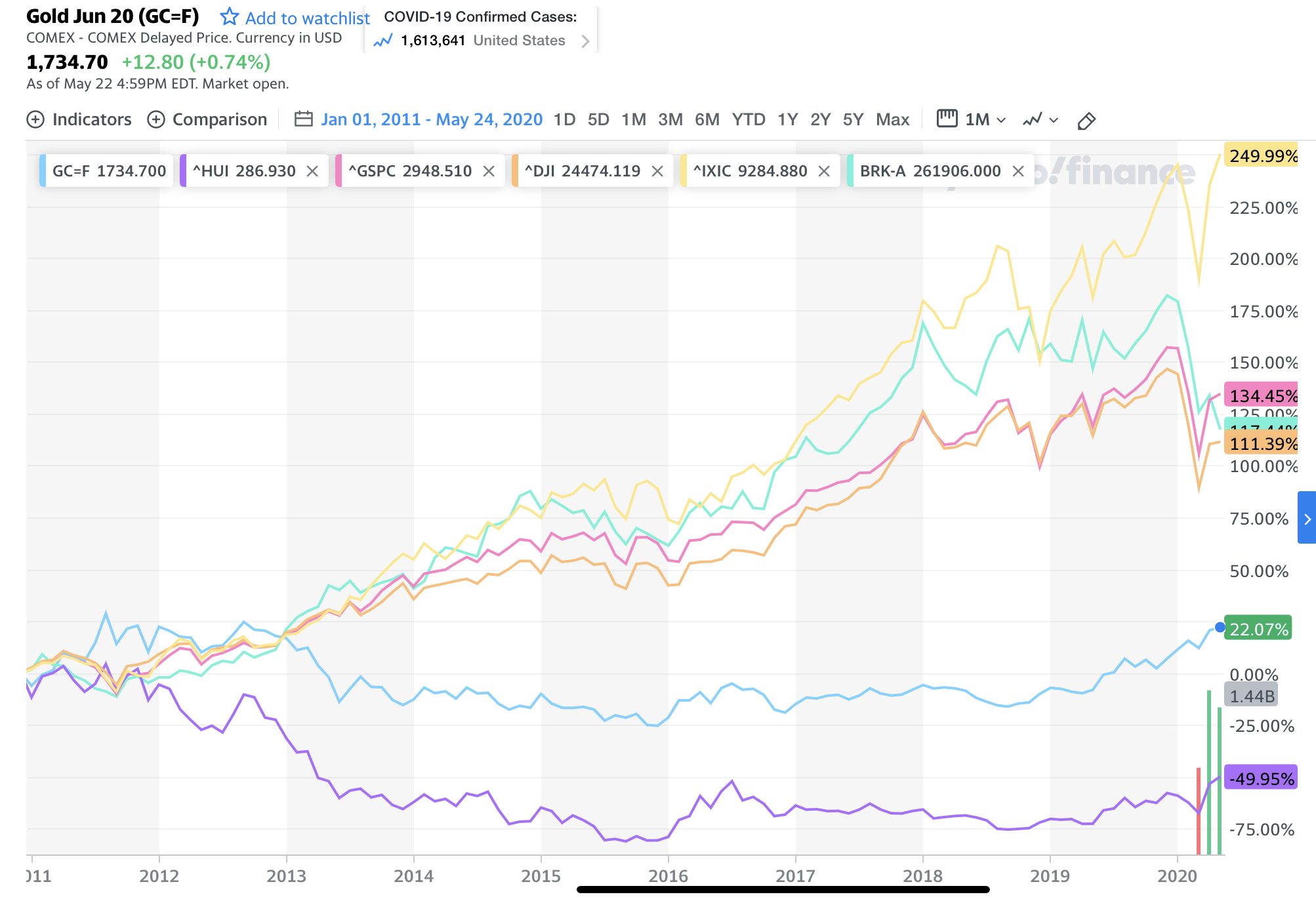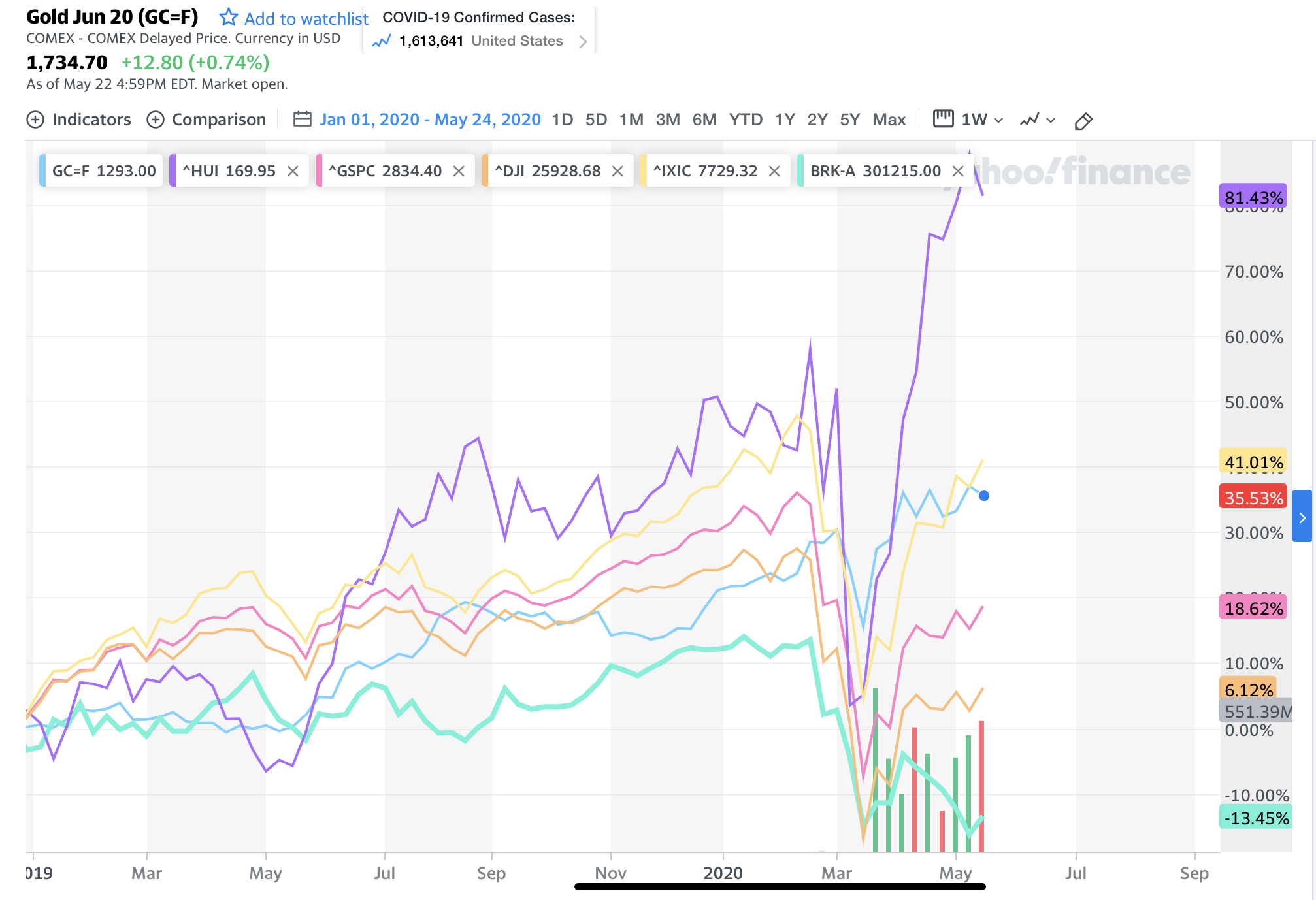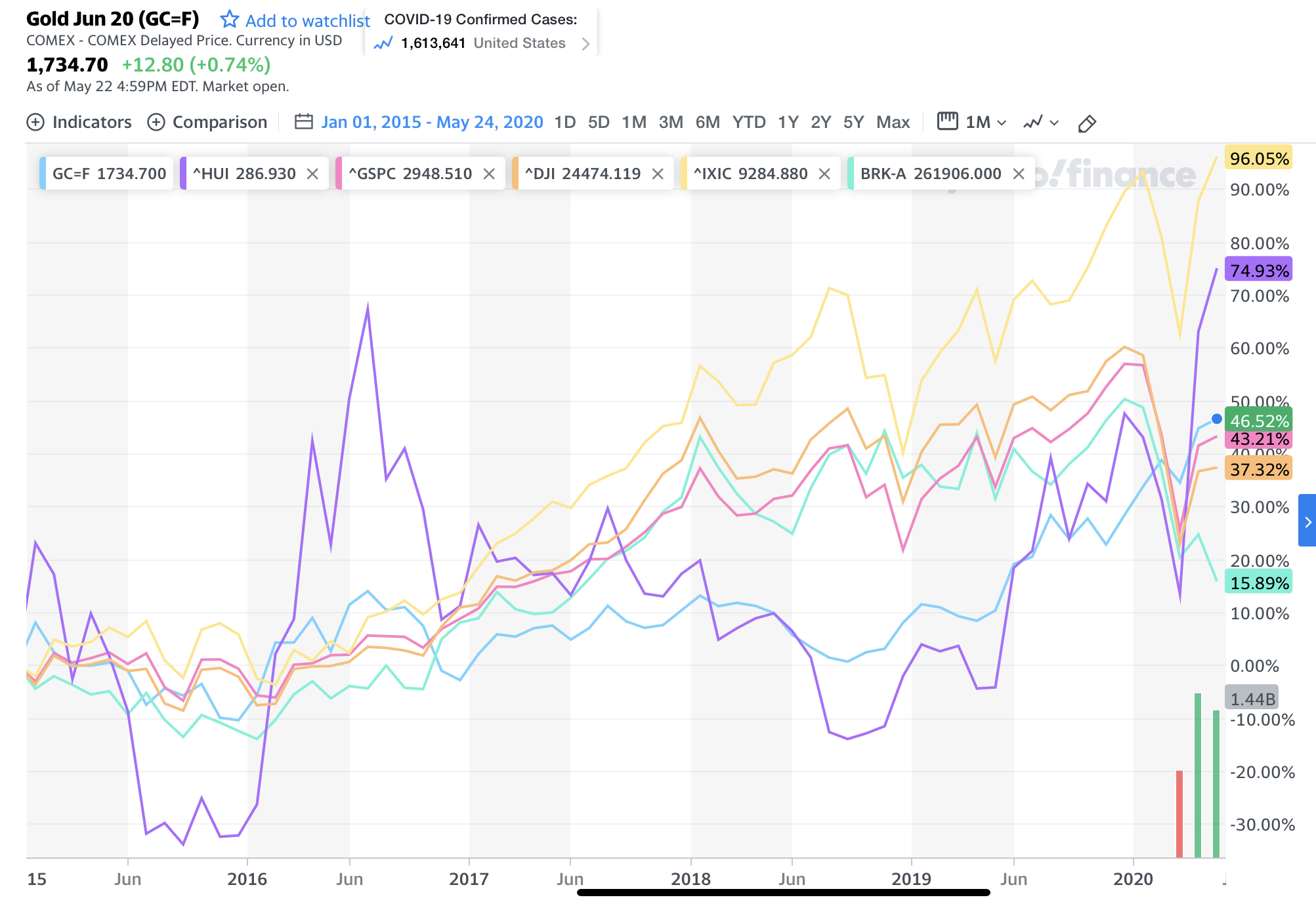 HUI is ahead of itself and gold is behind non-gold shares, gold shall rise more, and non-gold shares are about to crater, or