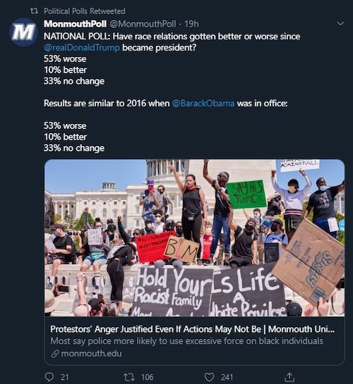 Eight years of Nobel Peace Prize laureate Barack Obama, the first African-American president, and public opinion with regard to race was no different than it is now:
