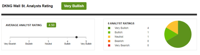Oppenheimer's take: "As more states legalize sports gambling, we believe competencies in product development and customer acquisition that DKNG utilized to become the DFS market leader (over 60% share) will allow the company to be a critical player in accelerating the shift in US sports betting from ~$150B wagered illegally/ offshore to licensed domestic operators. Legalized sports betting and iGaming markets are in their very early stages of growth, and we see an $18B revenue opportunity at scale, that also benefits from a sophisticated in-game wagering market. While a premium valuation and high cash flow burn likely create above-average volatility near term, we emphasize the long-term nature of our rating."