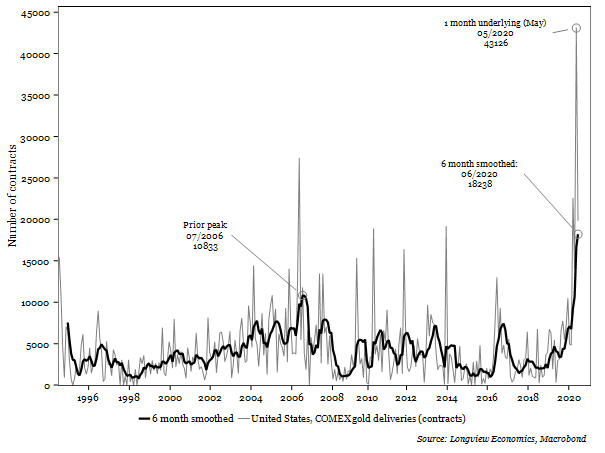 The concern is that we will see something like an old-fashioned bank run, or the remarkable events in the oil price which saw West Texas Intermediate go negative earlier this year. That was caused by an excess supply of physical oil; in the gold market, the fear is of insufficient supply. As Longview puts it: