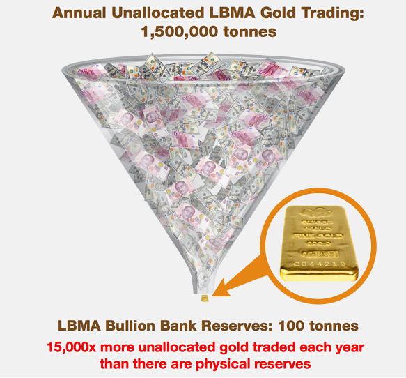 Just like in a bank run, therefore, if too many gold future holders decide to take delivery of physical gold at the same time (rather than simply rolling their contracts), then it’s likely the swap dealers won’t be able to satisfy all those demands (i.e. the physical gold isn’t there/available).
