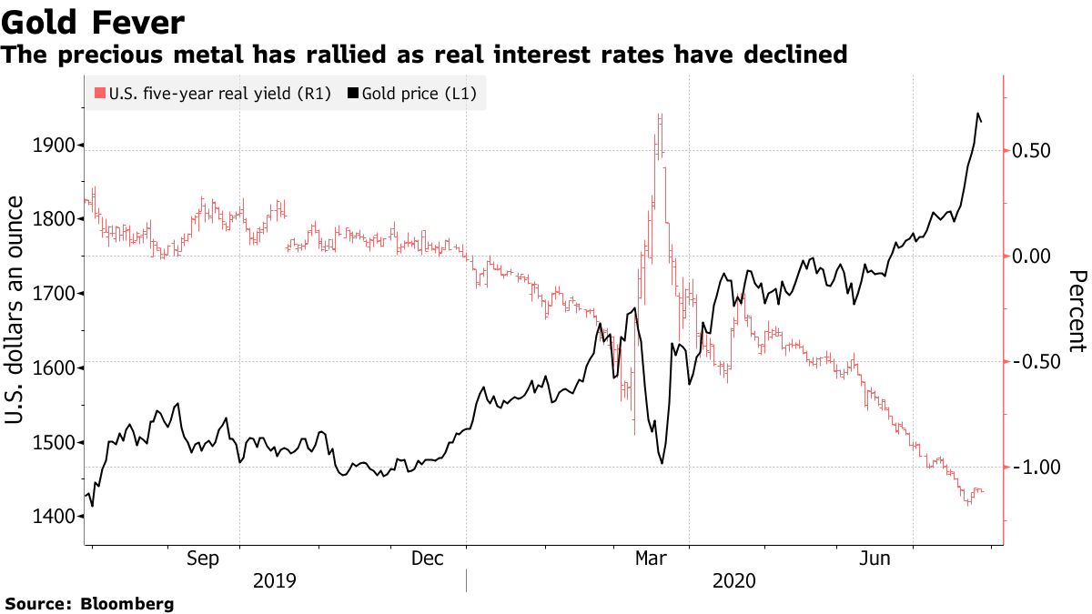 “Real concerns around the longevity of the U.S. dollar as a reserve currency have started to emerge,” wrote Goldman strategists including Daniel Sharp. “Gold is the currency of last resort, particularly in an environment like the current one where governments are debasing their fiat currencies and pushing real interest rates to all-time lows.”