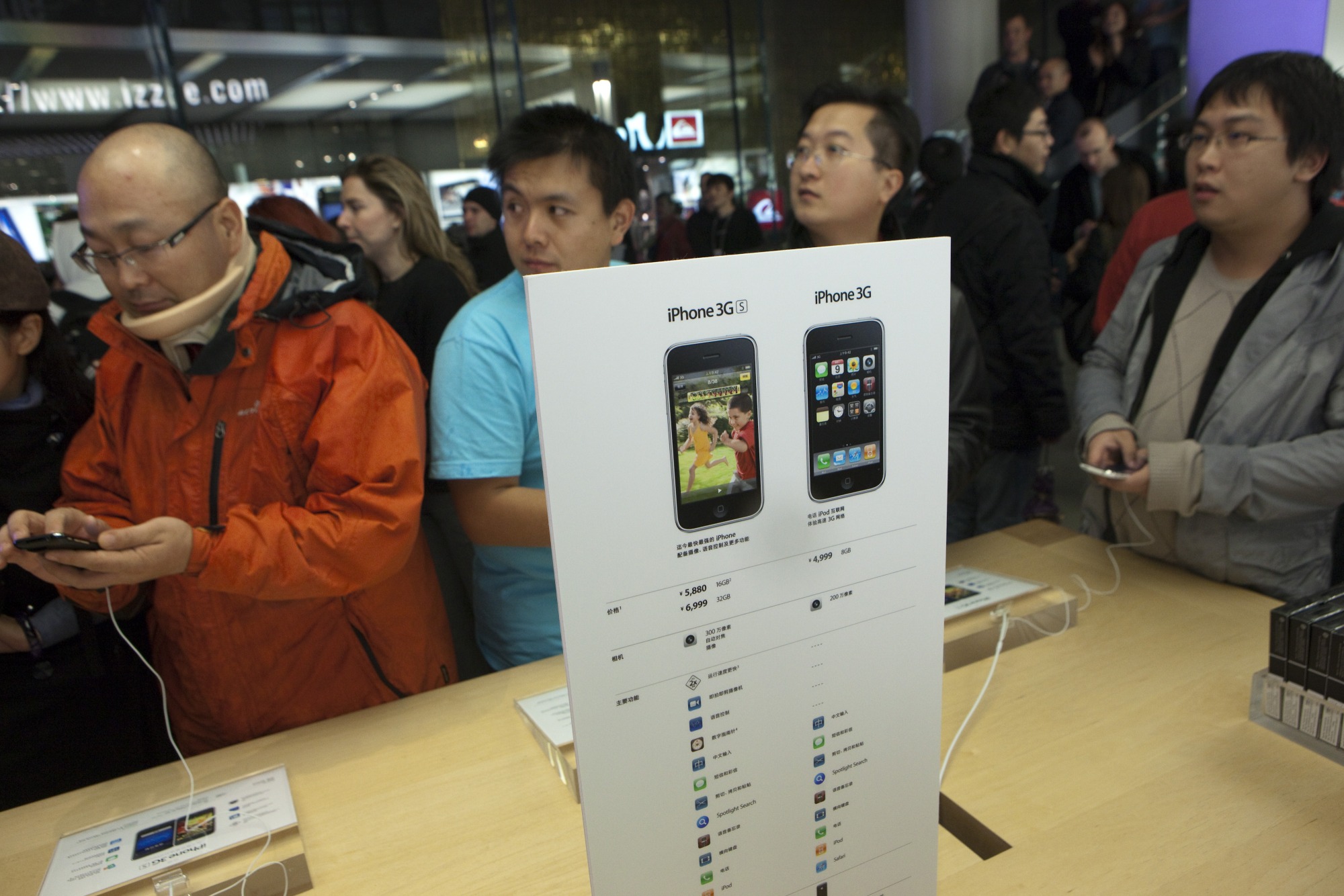 Customers at an event promoting the release of the iPhone in Beijing, China, on Oct. 30, 2009.