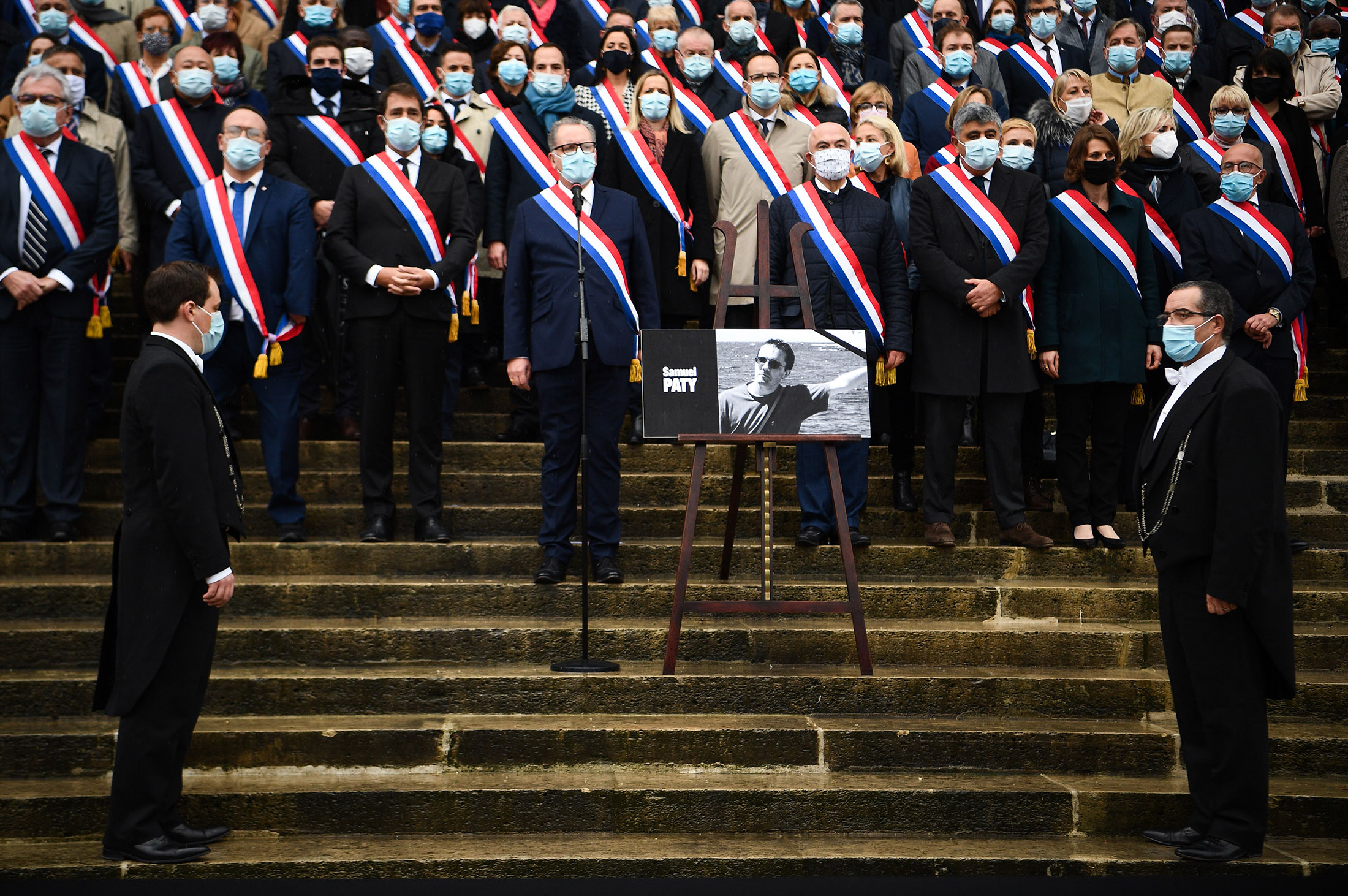 French MPs pay tribute to Samuel Paty, a teacher murdered on Oct. 16.