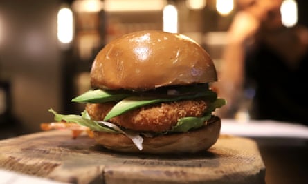 A cultivated chicken burger made by SuperMeat. Photograph: Quique Kierszenbaum/The Guardian -----------------------