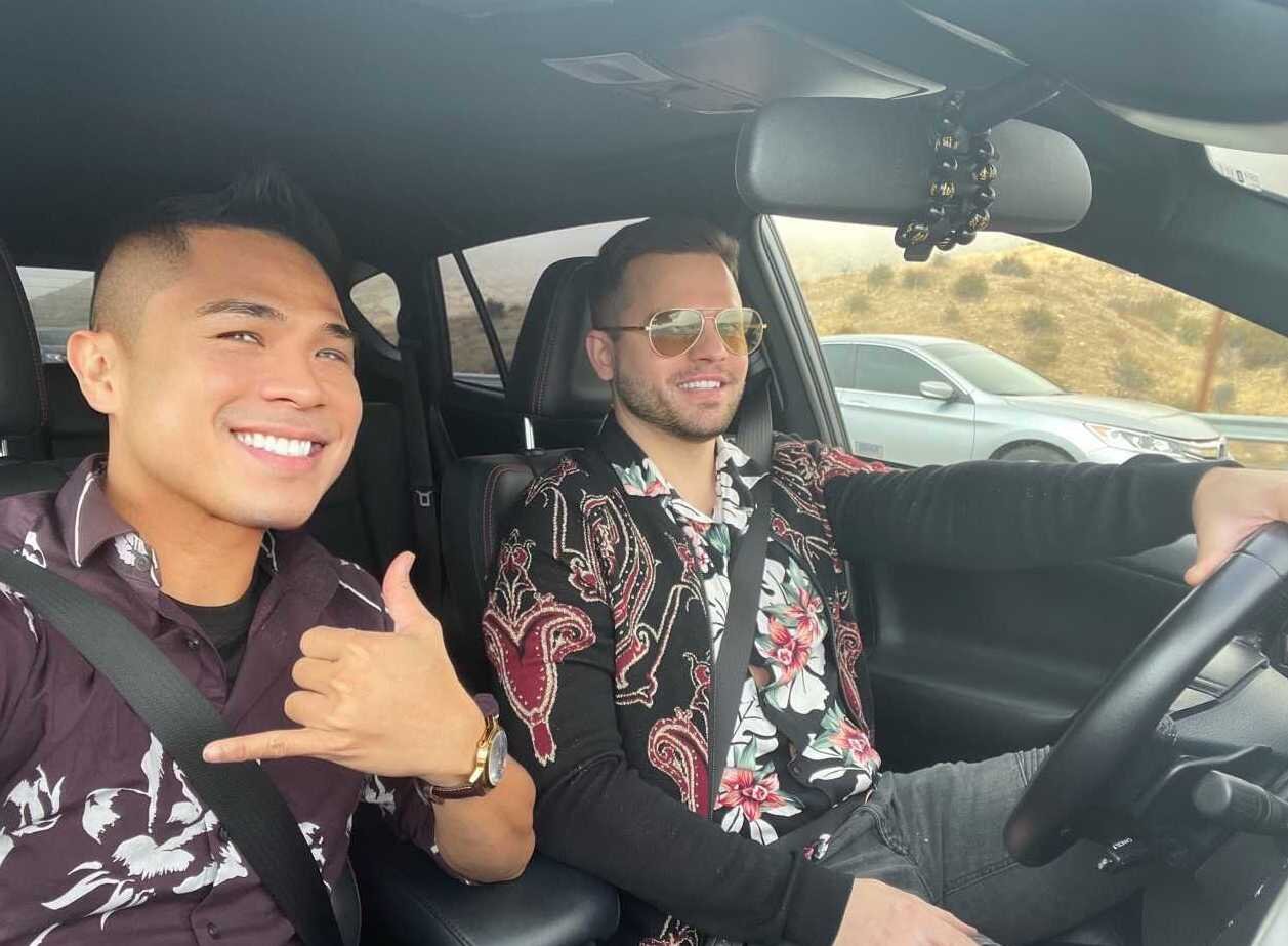 Airbnb host Jino Cabrera, left, and his partner, Scott Carnwath, on their way to Las Vegas after making nearly $15,000 from Airbnb's public stock market debut. Courtesy of Jino Cabrera --------------------
