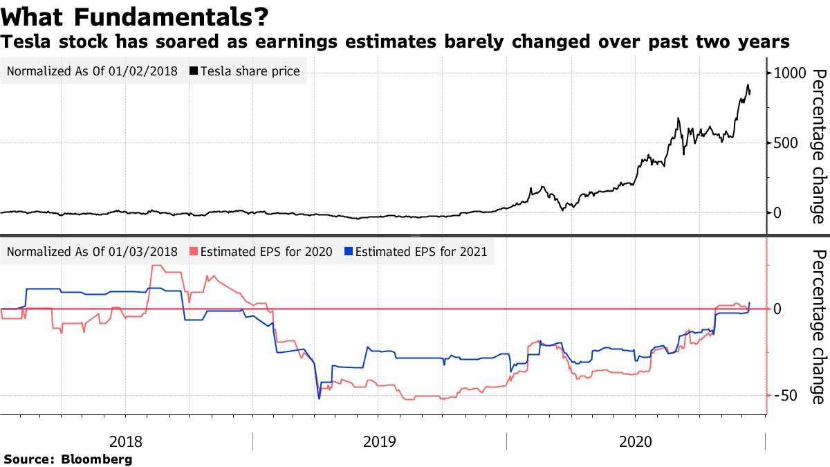 Now that the company is maturing into blue-chip status with its addition to the S&P 500 Index this month, what happens next may boil down to some simple questions: What type of company is Tesla exactly? And how should the stock be valued? Wall Street’s answers, however, are wildly different -- Goldman Sachs has a price target of $780, while JPMorgan Chase’s is $90.