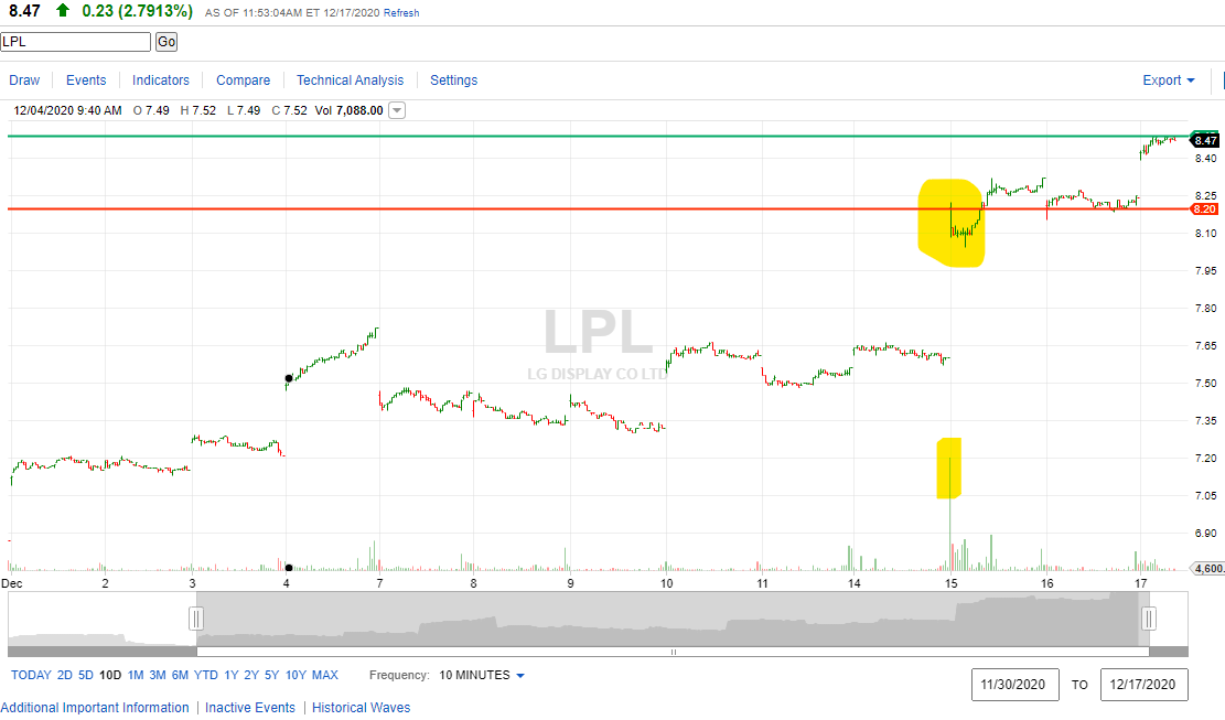 12/15 was a great open with strong volume on the gap up. (Opening 10 minutes had 320K shares $8.20 open, $8.08 Low, $8.10 close). The remainder of 12/15 & 12/16 did a very good job of setting a support level right around that $8.20 as I see it.