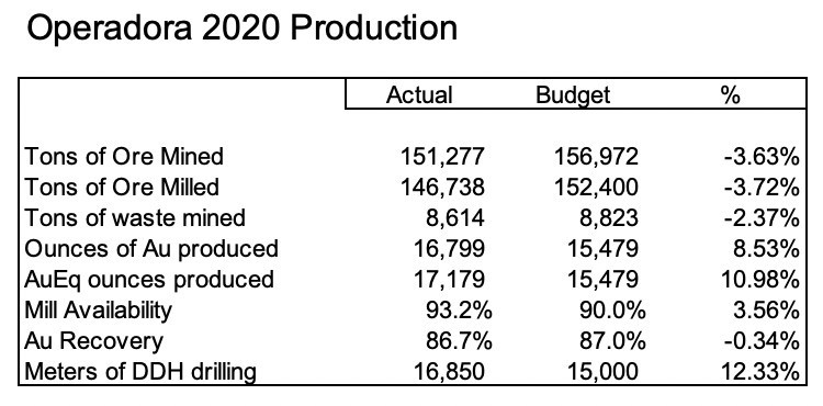 VANCOUVER, BC, Jan. 6, 2021 /CNW/ - Soma Gold Corp. (TSXV: SOMA) (WKN: A2P4DU) (OTC: PRSRF) (formerly Para Resources Inc.) (the "Company" or "Soma") is pleased to announce that its wholly-owned subsidiary, Operadora Minera S.A.S. produced 17,179 AuEq ounces in 2020, ahead of a budget of 15,479 AuEq ounces, a 10.98% improvement over budget. Operadora 2020 Production Results (CNW Group/Soma Gold Corp.) The Cordero-Balvina portal, which commenced construction at the end of September 2020, advanced by over 200 meters as of December 31st 2020. The construction of the portal is approximately 75 - 90 days behind schedule due to poor rock stability and mechanical issues with the contractors equipment. The decline is now expected to encounter the targeted higher grade mineralized zone in Q2 2020. Construction is now in stable and competent rock and the rate of advance is expected to improve.