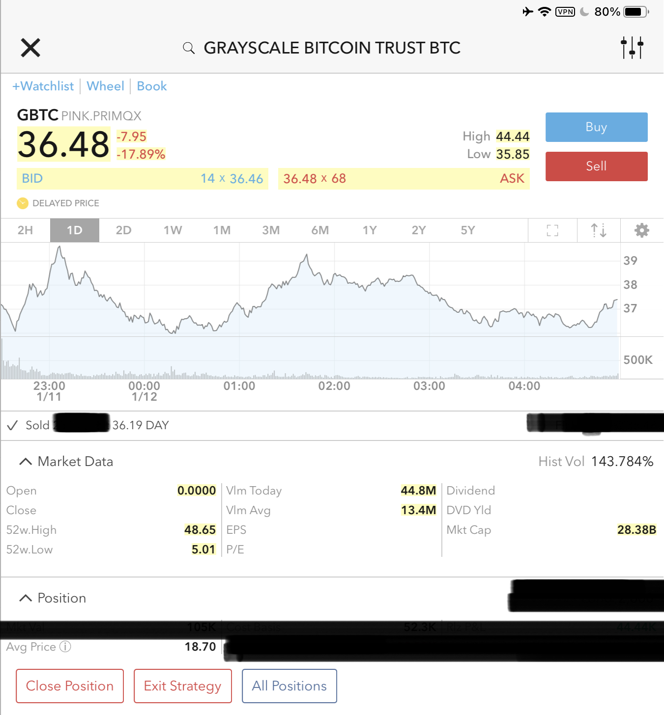 The intention is to keep the last bits of GBTC around, but who can know as the struggle continues between the bulls and bears. Have renewed undertaking to donate to scholarship run by university and perhaps best to take some more off of the table. Wife’s garden renovation needs funding. Etc etc.