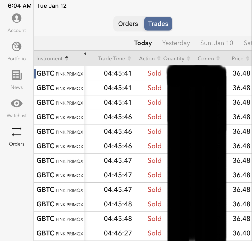 Am down to last 10% of my never-sell BTC after unloading 10% Monday NYSE time shortly before closing. GBTC is still orderly but the BTC chart looked heavy.