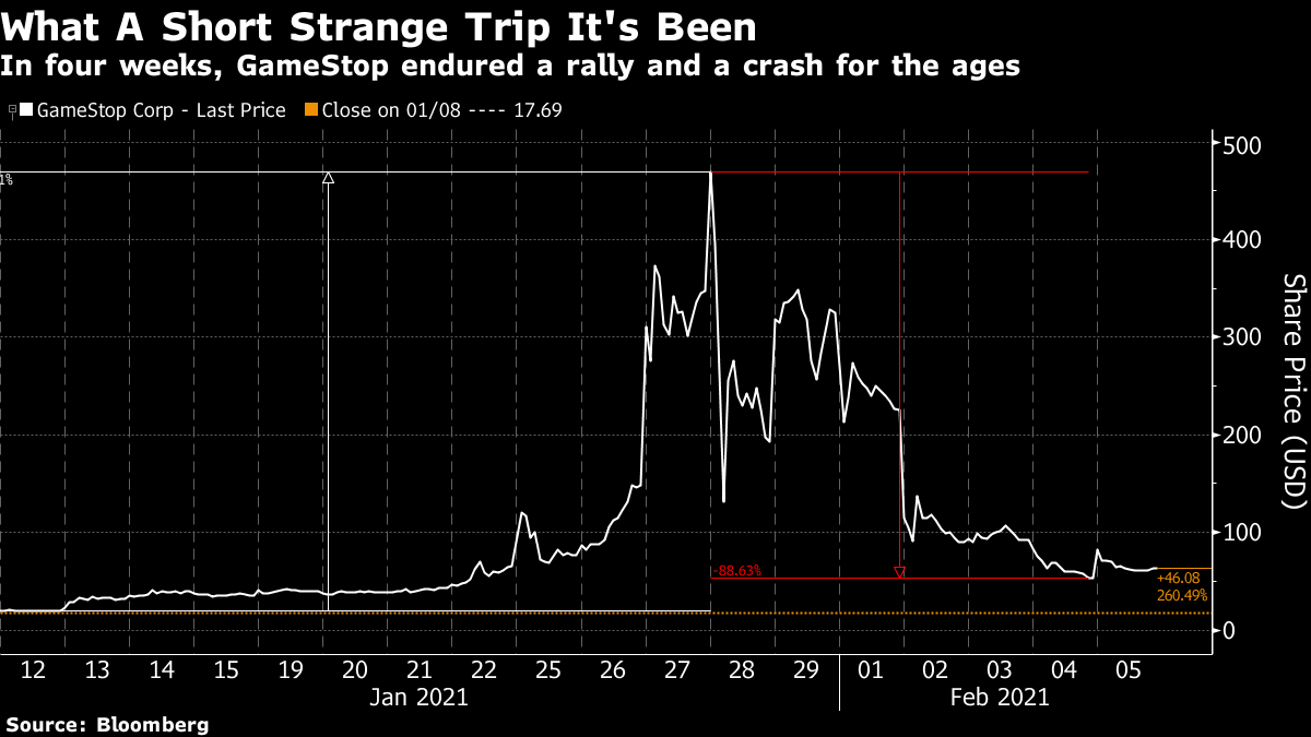 It was still a fantastic trade for those who got in early enough, or had the courage to short at the top. John Authers 8 February 2021, 13:06 GMT+8