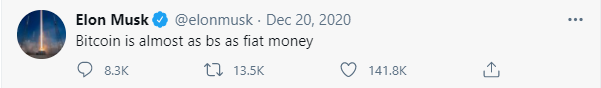 The move raises the usual questions about Tesla’s governance. Apart from the speculative nature of it, the fact that CEO Elon Musk has been tweeting heavily about cryptocurrencies of late should ring alarm bells in whatever passes for Tesla’s boardroom. Not necessarily because anything untoward has happened, but it’s fair to say Musk has some history to live down when it comes to the tweeting. Giving authorities any reason to scrutinize Tesla is inadvisable. One has to wonder what a regulator might make of this tweetfrom just a month before the “updated” investment policy was approved, for example: